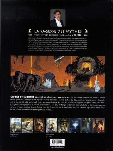 L'amour donne des ailes Fils du roi Oagre et de la muse Calliope, Orphée est génie de la musique et de la poésie. Par les accents de sa lyre, cadeau du dieu Apollon, il est capable de charmer n'importe quoi, et même d'attendrir les bêtes les plus sauvages. En revenant d'une expédition aux côtés des argonautes, il fait la rencontré d'Eurydice, une Dryade, dont il tombe éperdument amoureux. Mais peu de temps après leur mariage, la belle se fait mordre par un serpent, meurt instantanément et tombe aux enfers. Fou de chagrin, Orphée devient prêt à tout pour sauver sa bien-aimée. Jusqu'à aller chercher au coeur du royaume d'Hadès s'il le faut... Précédé du mythe de Déméter et Perséphone (à l'origine du phénomène des saisons chez les Grecs), ce nouvel album de la Sagesse des mythes vous conte ni plus ni moins que l'une des plus célèbres histoires d'amour du monde.