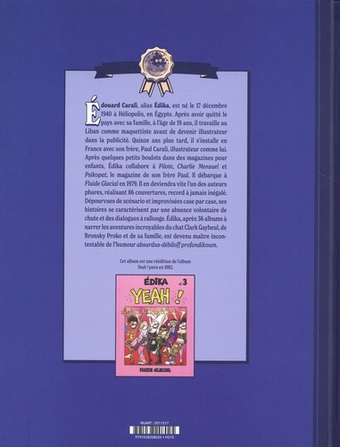 Découvrez ou redécouvrez 10 albums cultes de Fluide Glacial. A l'occasion des 50 ans de Fluide Glacial, cette collection fera fondre de nostalgie les lecteurs de Fluide et attisera la curiosité de futurs lecteurs. Une sélection d'albums représentatifs de l'humour et de l'esprit Fluide Glacial mis en valeur par la charte graphique vintage qui ne donne qu'une envie : les collectionner ! Orteils coincés Le 11e album d'Edika, dont la folie dévastatrice est connue de toute notre belle jeunesse française. Son chat sexy Clark Gaybeul est en passe de devenir un personnage national. Avec ses routiers énormes, ses douaniers bornés et ses plages débordantes de seins nus... Du rire franc et massif, voilà ce que nous apporte Edika ; sans aucune prétention. Orteils coincés : un excellent remède pour les casse-pieds.