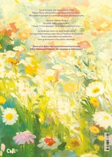 Sur sa terrasse, une douce soirée d'été, Mamie-Rose relit les lettres qu'Oscar a écrites à Dieu. Elle sourit en pensant à ce petit garçon dont elle fut si proche. " Bonsoir, Mamie-Rose ". La vieille dame relève la tête : " Oscar ? C'est amusant... je songeais justement à toi. " La tendresse entre ces deux-là est infinie, l'un exprimant toute sa colère face à l'injustice de la maladie, l'autre camouflant ses sentiments sous sa brusquerie d'ancienne catcheuse. Oscar et la dame rose ont bouleversé les lecteurs d'Eric-Emmanuel Schmitt. Un classique à redécouvrir !