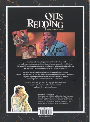 Le chanteur Otis Redding a marqué l'histoire de la soul, en seulement sept ans de carrière. Icône de la musique noire américaine, il a occupé le sommet des charts avec des chansons telles que I've been loving you too long, These arms of mine ou Try a little tenderness. Bien que fauché en pleine gloire, ses titres posthumes comme (Sittin' On) The Dock of the Bay l'ont installé durablement dans les mémoires. Toujours repris par de nombreux artistes à travers le monde, sa musique est restée intemporelle... Immortelle. Grâce au Docu-BD qui mêle BD et pages documentaires, découvrez les moments les plus marquants de la vie de "Mr. Pitiful" .
