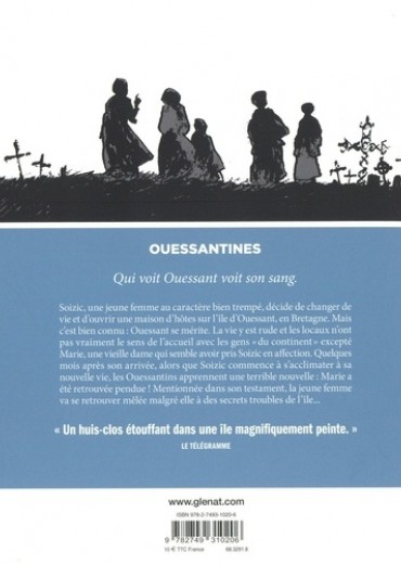 "Qui voit Ouessant voit son sang." Soizic, une jeune femme au caractère bien trempé, décide de changer de vie et d'ouvrir une maison d'hôtes sur l'île d'Ouessant, en Bretagne. Mais c'est bien connu : Ouessant se mérite. La vie y est rude et les locaux n'ont pas vraiment le sens de l'accueil avec les gens "du continent" excepté Marie, une vieille dame qui semble avoir pris Soizic en affection. Quelques mois après son arrivée, alors que Soizic commence à s'acclimater à sa nouvelle vie, les Ouessantins apprennent une terrible nouvelle : Marie a été retrouvée pendue ! Mentionnée dans son testament, la jeune femme va se retrouver mêlée malgré elle à des secrets troubles de l'île...
