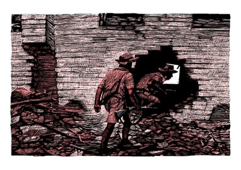 " Outrage fatigue " désigne, en anglais, le sentiment d'impuissance qui s'empare de celui ou celle qui contemple de trop près les malheurs du monde. A l'heure de l'information instantanée et de l'image omniprésente, le marché mondial de l'indignation est en accès libre et chacun peut y puiser autant de catastrophes, d'injustices, de tortures et d'exploitation qu'il lui faudra pour alimenter sa révolte ; mais à force, celle-ci s'émousse et la colère tourne souvent à l'apathie. Le livre d'Ivan Brun ne propose a priori pas de remède à ce mal moderne. Au contraire, ces 32 illustrations, réalisées à la plume ou en carte à gratter d'après des images d'actualité glanées sur le web puis mises en couleur en bichromie, ne font qu'en rajouter une couche. Comme une sorte d'inventaire imagé de ce que le monde compte comme horreurs, elles montrent toute la palette de l'oppression, de la violence et souvent de la cruauté - physique, morale ou symbolique - dont l'Homme est capable. Corps abusés, animaux dépecés, ouvriers exploités, militaires surarmés, politiciens en campagnes et starlettes survoltées : les images d'Outrage Fatigue semblent au premier abord avoir peu en commun, comme les pièces d'un puzzle impossible à assembler. Mais par leur juxtaposition, Ivan Brun nous donne au final à voir l'omniprésence des rapports de domination : des hommes sur les travailleuses du sexe, de l'Homme sur l'animal, du trafiquant ou du militaire sur le civil, du riche sur le pauvre, etc. Il semble proposer une lecture unificatrice qui, comme un pas en arrière, permet de voir enfin l'assemblage des différentes pièces du puzzle. Pour dépasser l'outrage fatigue causé par la surabondance et l'éclatement des indignations, Ivan Brun semble donc proposer une voie : " révoltés de toutes les causes, unissez-vous ! "