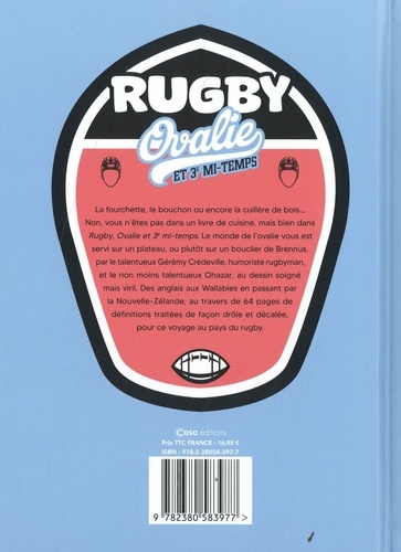 La fourchette, le bouchon ou encore la cuillère de bois... non, on ne vous parle pas de cuisine mais bel et bien de rugby. Le monde du ballon ovale vous est servi sur un plateau, ou plutôt sur un bouclier de Brennus, par le talentueux Gérémy Credeville, humoriste rugbyman, et le non moins talentueux Ohazar au dessin soigné mais viril. Des Anglais aux Wallabies en passant par la Nouvelle Zélande, voyagez en terres d'ovalie et (re)découvrez ce sport national à travers des définitions traitées de façon drôles et décalées. Alors en-avant toute !