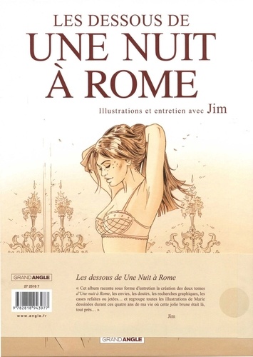 Les dessous de Une Nuit à Rome. "Cet album raconte sous forme d'entretien la création des deux tomes d'Une nuit à Rome, les envies, les doutes, les recherches graphiques, les cases refaites ou jetées... et regroupe toutes les illustrations de Marie dessinées durant ces quatre ans de ma vie où cette jolie brune était là, tout près..." Jim
