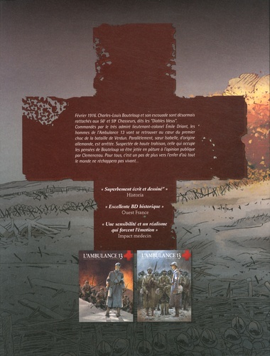 Février 1916. Charles-Louis Bouteloup et son escouade sont désormais rattachés aux 56e et 59e Chasseurs, dits les "Diables bleus". Commandés par le très admiré lieutenant-colonel Emile Driant, les hommes de l'Ambulance 13 vont se retrouver au coeur du premier choc de la bataille de Verdun. Parallèlement, soeur Isabelle, d'origine allemande, est arrêtée. Suspectée de haute trahison, celle qui occupe les pensées de Bouteloup va être jetée en pâture à l'opinion publique par Clemenceau. Pour tous, c'est un pas de plus vers l'enfer d'où tout le monde ne réchappera pas vivant...