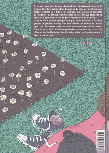 Avec ses faux airs de parc d'attractions, Padovaland emmène le lecteur dans la province et les banlieues du nord-est de l'Italie, une histoire chorale où le bien ne se distingue plus du mal, le coupable de la victime, où chaque relation, chaque geste, chaque personne se retrouve à agir dans une zone grise, morale, dénuée de sens. Dans ce récit parfois presque clinique, nous suivons la vie d'un groupe de jeunes de vingt ans anesthésiés par l'ennui et l'alcool spritz, les réseaux sociaux et les relations amoureuses désastreuses. C'est le portrait froid d'une génération sans but qui nous fait réfléchir sur la désolation dans la sphère des relations humaines à l'ère du numérique.