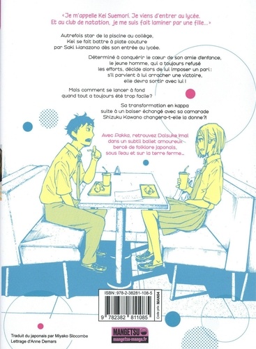 "Je m'appelle Kei Suemori. Je viens d'entrer au lycée. Et au club de natation, je me suis fait laminer par une fille..." Autrefois star de la piscine au collège, Kei se fait battre à plate couture par Saki Hanazono dés son entrée au lycée. Déterminé à conquérir le coeur de son amie d'enfance, le jeune homme, qui a toujours refusé les efforts, décide alors de lui imposer un pari : s'il parvient à lui arracher une victoire, elle devra sortir avec lui ! Mais comment se lancer à fond quand tout a toujours été trop facile ? Sa transformation en kappa suite à un baiser échangé avec sa camarade Shizuku Kawano changera-t-elle la donne ? !
