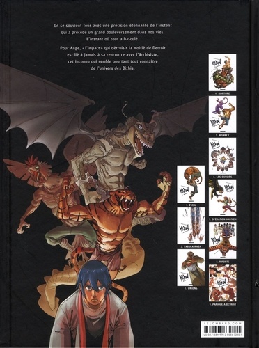 On se souvient tous avec une précision étonnante de l'instant qui a précédé un grand bouleversement dans nos vies. L'instant où tout a basculé. Pour Ange, "l'impact" qui détruisit la moitié de Detroit est lié à jamais à sa rencontre avec l'Archiviste, cet inconnu qui semble pourtant tout connaître de l'univers des Dizhis.