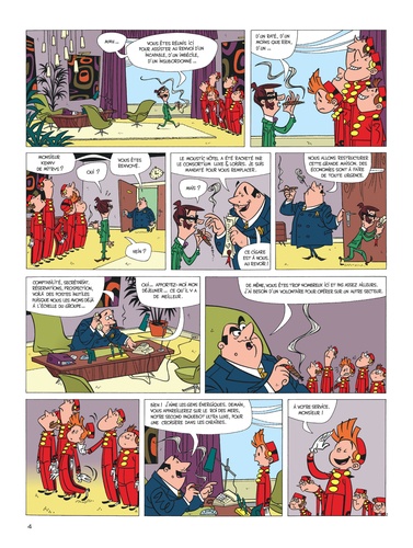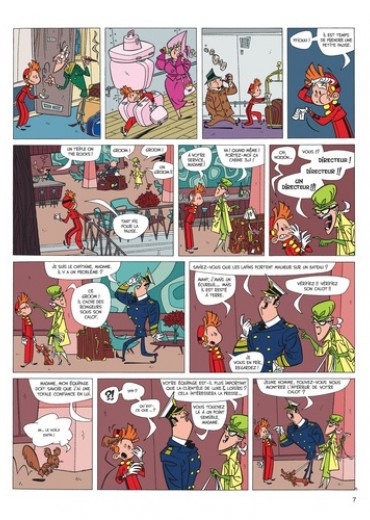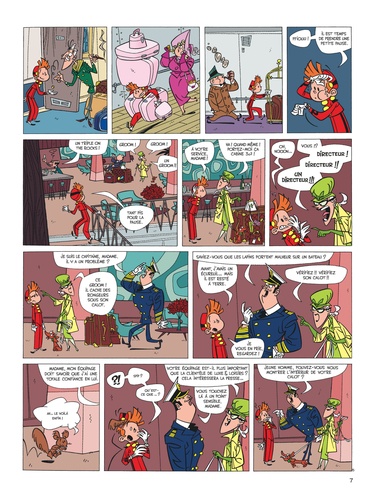 Suite à une restructuration économique, Spirou quitte le Moustic Hôtel pour devenir groom sur un transatlantique, son premier voyage sera perturbé par de nombreux incidents et par les exigences d'une clientèle de milliardaires bêtement prompts à paniquer au moindre naufrage catastrophique.