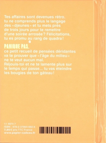 Tes affaires sont devenues rétro, tu ne comprends plus le langage des "djeunes" et tu mets près de trois jours pour te remettre d'une soirée arrosée ? Félicitations, tu es promu au rang de quadra ! Panique pas, ce petit recueil de pensées déridantes va te prouver que "l'âge du milieu" ne te veut aucun mal. Réjouis-toi et ne te lamente plus sur le temps qui passe... tu vas éteindre les bougies de ton gâteau !