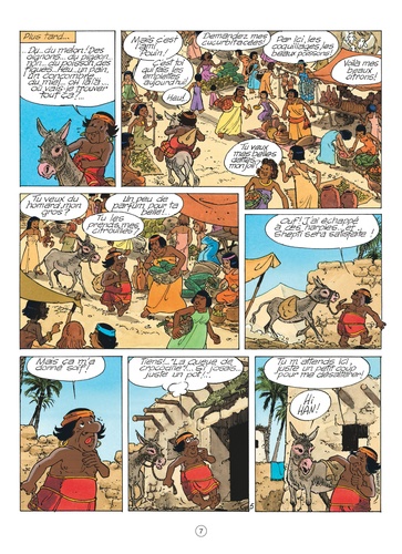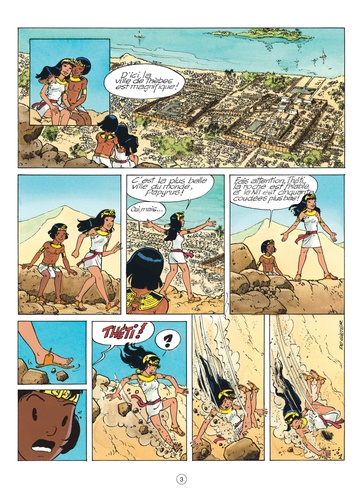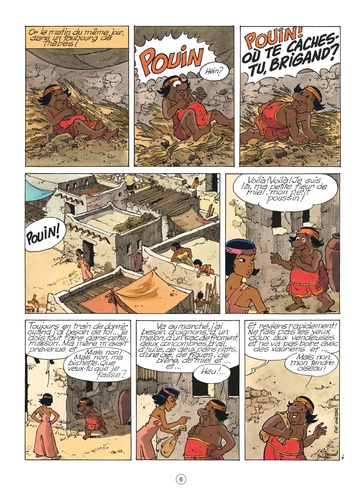 Alors que Pouin se désaltère au troquet "La Queue de crocodile", un mystérieux inconnu masqué l'approche pour lui révéler un terrible secret : son ami Papyrus serait d'ascendance royale ! Tout excité, le nain révèle à Shepti, son épouse très bavarde, l'incroyable nouvelle... qui ne tarde pas à faire le tour de Thèbes. La rumeur arrive aux oreilles de Pharaon qui, furieux, condamne à l'exil un Papyrus qui n'y comprend rien. Délivré par des soldats rebelles, il arrive à fuir. Papyrus ne le sait pas encore, mais il est tombé dans un terrible piège qui vise à le mettre sur le trône de Pharaon ! Une fois de plus, Lucien De Gieter nous conte un récit plein de fantaisie et d'humour tout en livrant une vision de l'Égypte des pharaons extrêmement bien documentée. Et l'auteur nous réserve également une fin totalement inattendue !