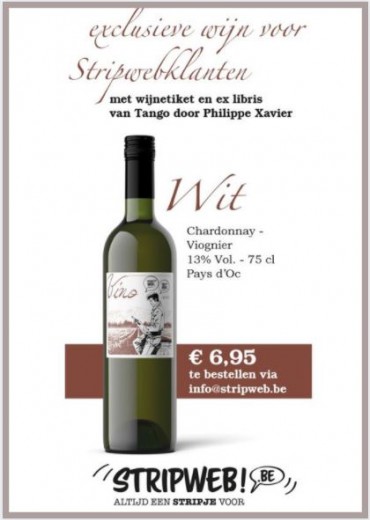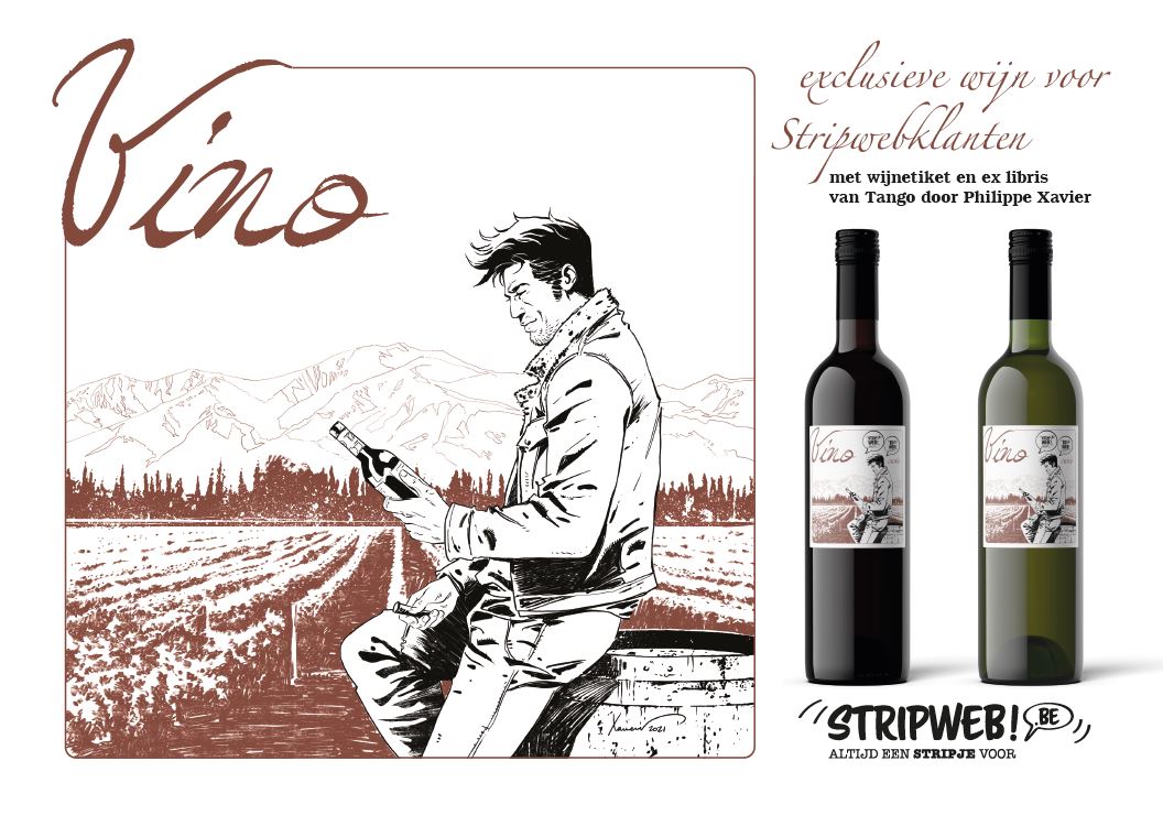 In 2021 overschreed Stripweb de kaap van 28.000 klanten. De drie fysieke winkels in Brugge, Brussel en Gullegem en de website Stripinfo.be, de meest complete stripdatabank, vormen samen het grootste Nederlandstalige platform, waar iedere stripliefhebber zich kan terugvinden. Stripweb verwent stripliefhebbers bovendien met originele extra’s om een toffe, aantrekkelijke en unieke collectie mogelijk te maken. Stripweb bedankt trouwe klanten van het afgelopen jaar 2021 met een exclusief geschenk: een fles wijn, gelimiteerd op slechts 300 exemplaren rood of 300 exemplaren wit. Op beide flessen prijkt een etiket met de stripheld Tango. Philippe Xavier tekende het speciaal voor deze wijnflessen. Bij elke fles hoort ook een ex libris. leverbaar vanaf 12/12/2021 Een collector’s item van jewelste, dus! En wat hoef je daarvoor te doen? Als trouwe, vaste klant helemaal niks, want we sturen je zomaar een fles op, samen met je eerstvolgende bestelling. Wie minder dan 650 euro per jaar besteedt, kan een fles rode of witte wijn met ex libris aankopen voor slechts 6,95 euro. Geniet en laat het avontuur van 2022 beginnen. We zijn er helemaal klaar voor! Santé! Chardonnay - Viognier 13% Vol. - 75 cl Pays d’Oc Merlot - Cabernet Sauvignon 13% Vol. - 75 cl Pays d’Oc