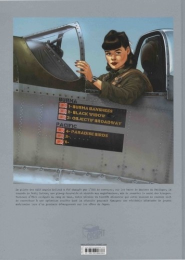 Quelque part au-dessus du Pacifique, au nord de la Nouvelle-Guinée... Aux commandes d'un Grumman J2F-5 "Duck" , Angela est chargée d'escorter de base en base Betty Hutton, une pin-up écervelée qui se "shoote" aux amphétamines. Le vieil hydravion est attaqué par deux appareils japonais ; grâce à l'intervention de deux "Corsair" , le "Duck" parvient à leur échapper et à regagner l'île d'Ulithi, un atoll paradisiaque servant de base de repos aux Marines. Heureusement, cette mission n'est qu'une couverture. L'OSS charge Angela d'une mission de plus grande importance : débarquer nuitamment sur les côtes d'un îlot tenu par les Japonais, un pilote ennemi capturé. Celui-ci a accepté de transmettre à un groupe pacifiste de l'entourage de l'empereur Hiro-Hito les conditions américaines pour une capitulation honorable de l'Empire du Soleil levant. Le but, éviter l'hécatombe que subiraient les troupes américaines si elle devaient envahir le Japon ! Cette mission se révèlera bien plus complexe que prévu, car les services secrets nippons ne sont pas disposés à accepter une reddition qu'ils considèrent comme infâmante... Confrontée à un ancien béguin, le fringant capitaine William Fowler, chargé de la sécurité du pilote capturé, Angela ne peut oublier le passé et le mystère entourant les circonstances de la mort tragique de sa soeur Maureen...
