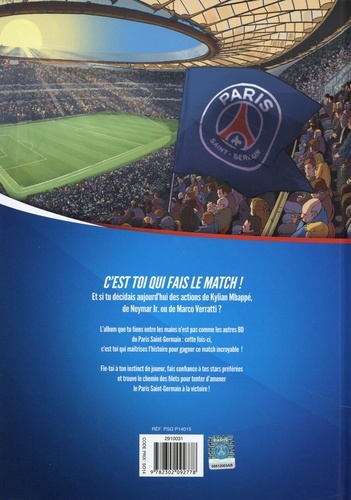Et si tu décidais aujourd'hui des actions de Kylian Mbappé, de Neymar Jr. ou de Marco Verratti ? L'album que tu tiens entre les mains n'est pas comme les autres BD du Paris Saint-Germain : cette fois-ci, c'est toi qui maitrises l'histoire pour gagner ce match incroyable ! Fie-toi à ton instinct de joueur, fais confiance à tes stars préférées et trouve le chemin des filets pour tenter d'amener le Paris Saint-Germain à la victoire !