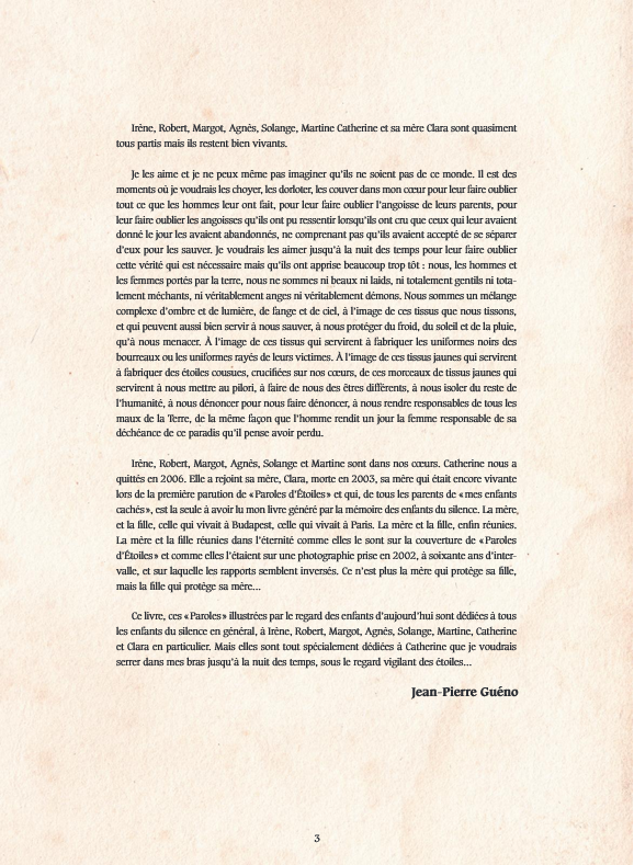 A l'âge de l'insouciance, projetés dans la guerre, marqués d'une étoile jaune et souvent séparés de leurs parents, des milliers d'enfants ont dû apprendre à se méfier, à mentir et se cacher. Ils ont noté leurs souvenirs dans des lettres ou des journaux intimes, adaptés ici en histoires courtes qui constituent un témoignage attestant des parts d'ombre et de lumière de notre Histoire.