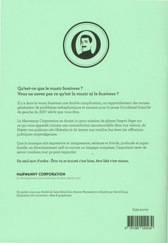 Qu'est-ce que le music business ? Vous ne savez pas ce qu'est la music ni le business ? Il y a dans le music business une double complication, un rapprochement des termes générateur de problèmes métaphysiques et moraux pour le jeune Occidental branché de gauche du XXIe siècle que vous êtes. La Marwanny Corporation se donne ici pour mission de glisser l'esprit léger sur ce qui vous apparaît comme une contradiction insurmontable dans vos valeurs, de libérer vos pulsions néo-libérales et de laisser aux intellos has been les réflexions politiques moyenâgeuses. Que la musique soit expressive et inexpressive, sérieuse et frivole, profonde et superficielle, un divertissement naïf ou encore un langage complexe, l'important reste de savoir combien tout ça peut rapporter. Imposture ou sagesse ? Un seul mot d'ordre : être vu et écouté c'est bien, être liké c'est mieux.