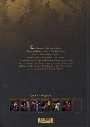 La répression de la révolte étudiante a fait de nombreuses victimes. This, Kara, Terys... Personne n'en est ressorti indemne. Pourtant, à l'heure où Angleon s'apprête à recevoir une ambassade venue d'Erinal, Mederion reste plus que jamais persuadé que c'est le moment pour réformer le pays. Le retour sur l'île d'un certain Kirill va en décider autrement et faire basculer le destin de toutes celles et ceux Qui gravitent autour du trône d'Angleon.