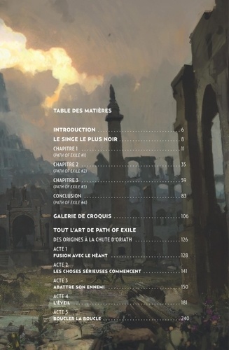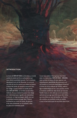 Avant le Cataclysme, avant même le premier Exil qui jeta des milliers d'âmes sur les côtes corrompues de Wraeclast, se tenait l'Empire Eternel. Apprenez de la main du poète Victoria Nevalius comment il se trouva immergé parmi le peuple des terribles Karuis à négocier une alliance contre la menace que faisaient alors peser l'Empereur Chitus et le thaumaturge Malachai. Le Roi Kaom du peuple karui parviendra-t-il à terrasser Marceus OEil de Lion, général de Chitus ? Assistez à la génèse de la Rébellion de la Pureté ! Path of exil est devenu en dix ans, et autant d'extensions, la référence de l'Action RPG en ligne. Développé par le studio néo-zélandais Grinding Gear Games, ce hack & slash gratuit d'accès et aujourd'hui intégralement traduit en français rassemble quotidiennement des millions de joueurs à travers le monde. Cet ouvrage dédié rassemble en un même livre l'adaptation en comics de la Rébellion de la Pureté, ainsi que l'art book, présentant de nombreux détails sur les origines et l'évolution du jeu jusqu'à 2017.