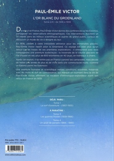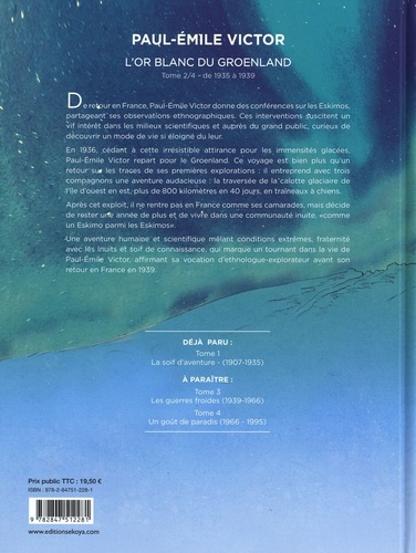 Paul-Emile Victor, un explorateur emblématique du 20 éme siècle, une vie d'aventures extraordinaires. Deux scénaristes, spécialistes de Paul-Emile Victor, Stéphane Dugast, l'auteur de plusieurs ouvrages et réalisateur de films documentaires, il est secrétaire général de la Société des Explorateurs Français. Stéphane Niveau, également auteur de nombreux ouvrages, guide naturaliste et conférencier polaire depuis vingt cinq ans. Avec Jean-Christophe Victor, fils de l'explorateur, il a co-fondé l'Espace des Mondes Polaires Paul-Emile Victor et en a été le premier directeur scientifique et culturel Laurent Seigneuret est l'illustrateur de nombreuses bandes dessinées historiques, dont la BD biographique : Louis Pasteur, une vie au service de la vie, qui a reçu le prix du livre "Sciences pour tous" de l'Académie des Sciences.