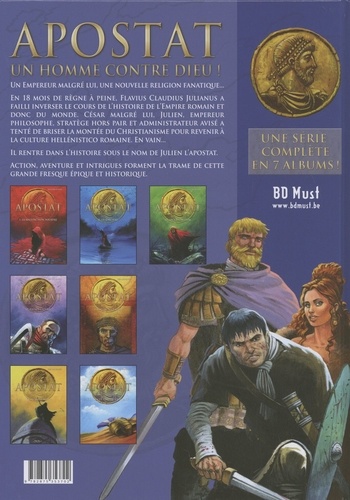 Un Empereur malgré lui, une nouvelle religion fanatique... En 18 mois de règne à peine, Flavius Claudius Julianus a failli inverser le cours de l'histoire de l'Empire romain et donc du monde. César malgré lui, Julien, empereur philosophe, stratège hors pair et administrateur avisé a tenté de briser la montée du Christianisme pour revenir à la culture hellénistico romaine. En vain... Il rentre dans l'histoire sous le nom de Julien l'apostat. Action, aventure et intrigues forment la trame de cette grande fresque épique et historique.