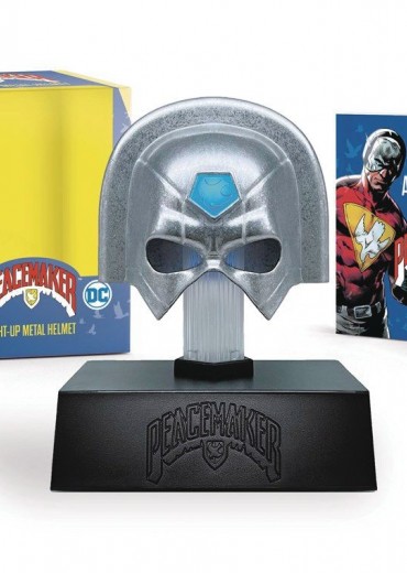 Make room for Peacemaker with this one-of-a-kind, officially licensed DC mini collectible! Features a 2-inch replica of Peacemaker's now-iconic helmet, with a glowing emblem, on a display stand. Also includes a full-color, illustrated 48-page mini book presenting Peacemaker's major comic book appearances and storylines, along with classic comic book art.
