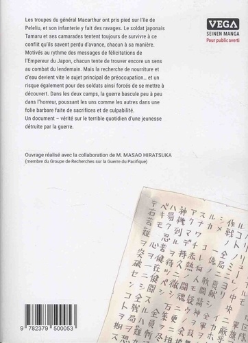 Les troupes du général Macarthur ont pris pied sur l'île de Peleliu, et son infanterie y fait des ravages. Le soldat japonais Tamaru et ses camarades tentent toujours de survivre à ce conflit qu'ils savent perdu d'avance, chacun à sa manière. Motivés au rythme des messages de félicitations de l'Empereur du Japon, chacun tente de trouver encore un sens au combat du lendemain. Mais la recherche de nourriture et d'eau devient vite le sujet principal de préoccupation... et un risque également pour des soldats ainsi forcés de se mettre à découvert. Dans les deux camps, la guerre bascule peu à peu dans l'horreur, poussant les uns comme les autres dans une folie barbare faite de sacrifices et de culpabilité. Un document - vérité sur le terrible quotidien d'une jeunesse détruite par la guerre. Ouvrage réalisé avec la collaboration de M. MASAO HIRATSUKA (membre du Groupe de Recherches sur la Guerre du Pacifique).
