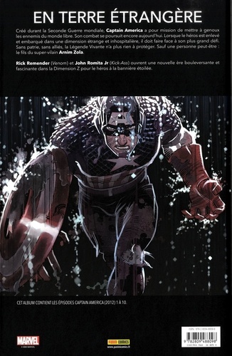 Créé durant la Seconde Guerre mondiale, Captain America a pour mission de mettre à genoux les ennemis du monde libre. Son combat se poursuit encore aujourd'hui. Lorsque le héros est enlevé et embarqué dans une dimension étrange et inhospitalière, il doit faire face à son plus grand défi. Sans patrie, sans alliés, la Légende Vivante n'a plus rien à protéger. Sauf une personne peut-être : le fils du super-vilain Arnim Zola. Rick Remender (Venom) et John Romita Jr (Kick-Ass) ouvrent une nouvelle ère bouleversante et fascinante dans la Dimension Z pour le héros à la bannière étoilée. Cet album contient les épisodes Captain America (2012)1 à 10.