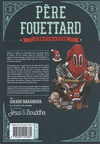 Découvrez le côté obscur du Père Noël ! Miharu, après sa désespérante plongée dans le futur, est de retour dans le présent. Il en apprend davantage sur Knecht, Drosselmeyer, Tôma, et les terribles liens qui les unissent et les asservissent. Galvanisé par ce qu'il vient de découvrir, notre héros s'élance dans les sous-sols de l'Atelier du père Noël afin de sauver sa mère, Haruko, du cachot où les souris la retiennent. L'heure des retrouvailles a sonné, et ce, sur plus d'un plan. C'est également dans le ventre de l'Atelier que Miharu et les siens feront la connaissance des deux dernières rennes, Danseuse et Furie. Mais pas de repos pour les braves ! La prochaine mission se profile déjà. Les dangers rôdent et les ennemis fourbissent leurs armes en vue de la grande bataille de Noël, dans ce 8e tome de Père Fouettard Corporation !