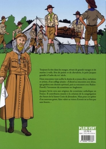 Toujours la tête dans les nuages, rêvant de grands voyages et de marine à voile, féru de poésie et de chevalerie, le petit Jacques grandit à l'aube du XXe siècle. Deux rencontres vont sceller le destin de ce jeune élève, turbulent et artiste, d'un collège jésuite : d'abord sa rencontre avec Jésus, qui guidera son chemin spirituel, puis sa rencontre avec Baden-Powell, l'inventeur du scoutisme en Angleterre. Jacques Sevin sera aux origines du scoutisme catholique en France. Il contribuera ensuite à la création de la congrégation des Soeurs de la Sainte-Croix de Jérusalem. Mais pour cet apôtre d'un nouveau genre, faire valoir sa vision d'avenir ne se fera pas sans heurts...
