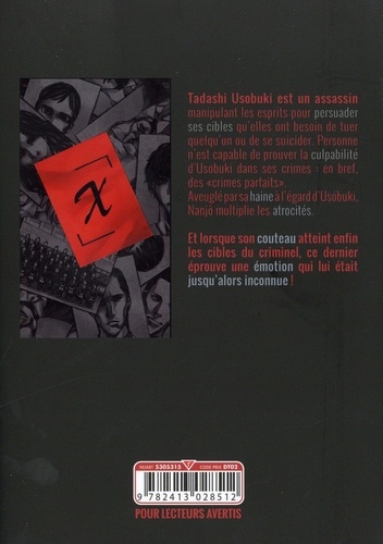 Un homme, Tadashi Usobuki, est repéré à plusieurs reprises sur le lieu de crimes étranges. Toutefois, personne n'arriveà prouver sa culpabilité. Depuis, tout le monde l'appelle "l'homme aux crimes parfaits" . Haine... Jalousie... Désir... et amour. Usobuki est capable de répondre à toutes les demandes de meurtre de ses clients. Et méfiez-vous, il ne rôde jamais treès loin de vous...
