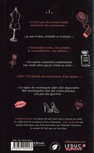 "Il n'y a pas de femmes laides, seulement des paresseuses." "Je suis irritée, irritable et irritante." "L'innovation ratée, c'est pénible ; la reconstitution, c'est sinistre." "Les autres couturiers continuaient une mode alors que je créais un style." "Dior ? Il n'habille pas les femmes, il les tapisse." "Le règne du mannequin-objet doit disparaître. Mes mannequins sont des vraies femmes, non pas des spectres."