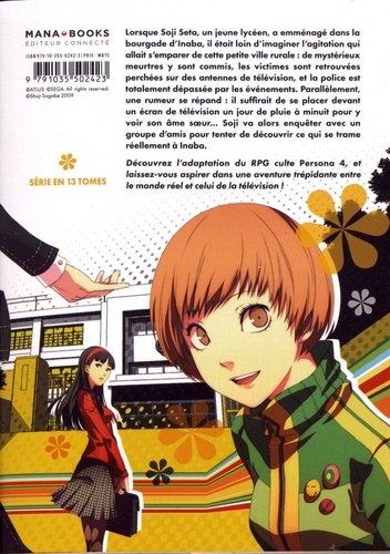 Lorsque Soji Seta, un jeune lycéen, a emménagé dans la bourgade d'Inaba, il était loin d'imaginer l'agitation qui allait s'emparer de cette petite ville rurale : de mystérieux meurtres y sont commis, les victimes sont retrouvées perchées sur des antennes de télévision, et la police est totalement dépassée par les événements. Parallèlement, une rumeur se répand : il suffirait de se placer devant un écran de télévision un jour de pluie à minuit pour y voir son âme soeur... Soji va alors enquêter avec un groupe d'amis pour tenter de découvrir ce qui se trame réellement à Inaba. Découvrez l'adaptation du RPG culte Persona laissez-vous aspirer dans une aventure trépidante entre le monde réel et celui de la télévision !