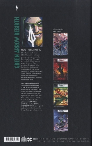 Oliver Queen est de retour à Star City mais il a fort à faire pour reprendre sa vie en main. Son entreprise est aux mains de criminels et il est toujours accusé du meurtre d'une secrétaire. De plus ses alliés, Red Arrow et Shado, ne seront pas de trop afin de repousser les attaques de Merlyn, Shado, Tockman et même de sa propre mère, Moira Queen, en charge des activités tortueuses du Neuvième Cercle ! Contient : Green Arrow vol.6 (#33-38). Green Arrow Rebirth est l'occasion pour Benjamin PERCY (Teen Titans) de réaliser un thriller haletant dans lequel Oliver Queen renoue avec son caractère altruiste de l'ère Classique, mais également avec Dinah Lance, alias Black Canary, avec qui il formait le couple mythique de cette période. Jamal CAMPBELL (Naomi), Stephen BYRNE (Wonder Twins) l'accompagnent au dessin et concluent ensemble la nouvelle épopée de l'archer vert.