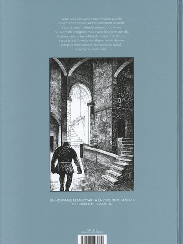 Déter, créature taciturne, seule survivante d'une mission suicide de reconnaissance, revient réclamer son salaire à son ancien maître. Mais pour arriver à ses fins, il devra franchir les différents niveaux de la tour, occupés par une armée de guerriers maléfiques. Tous lui mettront des bâtons dans les roues, par pure méchanceté, fourberie ou calcul. Mais Déter ne lâche rien et gravit tous les étages, parfois par la ruse, souvent par la force brute, mettant à profit le chaos ambiant pour tirer son épingle du jeu. Un hommage à la pure dark fantasy de Corben et Frazzeta.