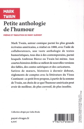 Mark Twain, auteur comique parmi les plus grands écrivains américains, a réalisé en 1888, avec l'aide de collaborateurs, une vaste anthologie de textes humoristiques, tous dus à des contemporains, parmi lesquels Ambrose Bierce ou Twain lui-même. Aux courtes histoires drôles se mêlent de nouvelles versions des fables, des contes satiriques et des caricatures. Satires de moeurs, histoires à dormir debout, règlements de comptes avec la littérature du Vieux Continent : ce petit livre propose, à partir de la somme de Twain, un choix de ce que l'humour américain peut avoir de meilleur, de plus corrosif, de plus insolite.