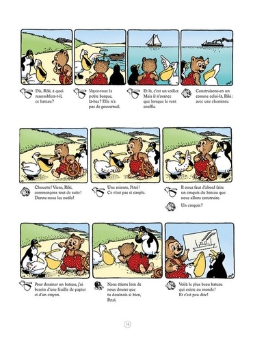 Petzi et son ami Pingo le pingouin trouvent en se promenant ce qu'ils croient être une roue. Mais Riki le pélican les détrompe ! Il s'agit d'un gouvernail ! Il n'en faut pas plus à nos trois amis pour décider de construire un bateau pour partir à l'aventure...
