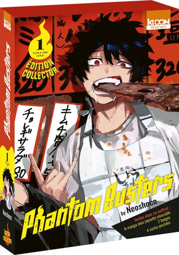 Un problème de spectre ? Oubliez SOS Fantômes, appelez les Phantom Busters ! Edition collector limitée sous coffret cartonné incluant : - le tome 1 de Phantom Busters avec une jaquette alternative réversible - 2 badges - 4 cartes postales Et en bonus : une carte à collectionner All Stars spéciale à l'effigie du personnage de Mogari ! Résumé tome 1 : Eugene Korekishi s'apprête à intégrer le lycée de Kamakura, ville du Japon réputée pour ses phénomènes paranormaux. En petit génie des sciences, il ne croit pas à ces légendes... jusqu'à ce qu'il soit attaqué par un spectre le jour de la rentrée ! Il est sauvé de justesse par deux camarades : Mogari, un adolescent capable de dévorer les ectoplasmes, et Kaoru, médium sensible aux esprits. Si Mogari, descendant d'une illustre famille d'exorcistes, a pu quitter son village perdu dans les montagnes, c'était à condition de chasser les fantômes à Kamakura... Mais il a surtout envie de profiter de ses années lycée ! Pour joindre l'utile à l'agréable, il décide de fonder avec Eugene et Kaoru un club d'activité secret : les Phantom Busters ! Spectres et autres esprits n'ont qu'à bien se tenir ! Entre deux cours, les Phantom Busters enchaînent actes de bravoure et gaffes d'amateurs... Occultisme, action et humour se bousculent dans ce titre totalement déjanté !