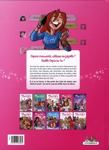 Copine marrante, râleuse ou fofolle ? Quelle Cop's es-tu ? Aux yeux de Jessica, rien au monde n'a plus d'importance que ses Cops ! Et des Cop's, elle en a de toutes les tailles et de toutes les formes. Des râleuses, des chochottes, des allumées, des Cop's d'enfance, de lycée, de sortie, de drague, de coiffeur, celles auxquelles elle confie tous ses secrets et celles auxquelles elle ne prêterait même pas son chat ! Et si ça se trouve, tu fais partie des Cop's de Jessica sans même le savoir ! Ca vaut le coup de vérifier dans cet album.