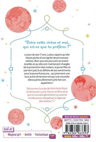 Le jour de ses 17 ans, Lukia a appris qu'elle faisait partie dune lignée de princesses sirènes. Bien que ses pouvoirs se soient éveillés et qu'elle soit maintenant chargée de la protection des océans, la jeune fille ne parvient pas à se défaire de ses sentiments pour le jeune Kurosuna... qui prennent une tout autre dimension lorsqu'une nouvelle élève particulièrement jolie fait son apparition ! Découvrez la suite de Pichi Pichi Pitch et retrouvez Lucia, Hanon et Rina ainsi que la nouvelle génération qui prend la relève pour perpétuer la légende des sirènes !