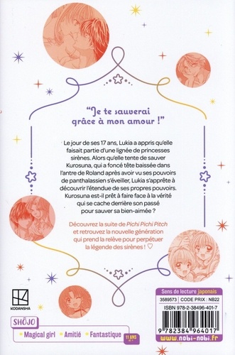 Le jour de ses 17 ans, Lukia a appris qu'elle faisait partie d'une lignée de princesses sirènes. Alors qu'elle tente de sauver Kurosuna, qui a foncé tête baissée dans l'antre de Roland après avoir vu ses pouvoirs de panthalassien s'éveiller, Lukia s'apprête à découvrir l'étendue de ses propres pouvoirs. Kurosuna est-il prêt à faire face à la vérité qui se cache derrière son passé pour sauver sa bien-aimée ? Découvrez la suite de Pichi Pichi Pitch et retrouvez la nouvelle génération qui prend la relève pour perpétuer la légende des sirènes ! ?