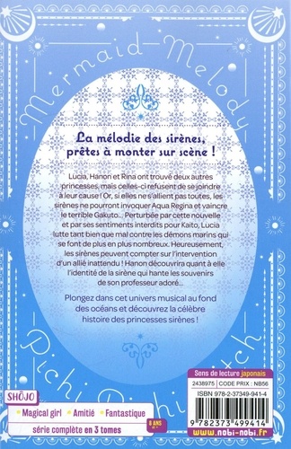 Lucia, Hanon et Rina ont trouvé deux autres princesses, mais celles-ci refusent de se joindre à leur cause ! Or, sans le concours de toutes, les sirènes ne pourront invoquer Aqua Regina et vaincre le terrible Gakuto... Perturbée par cette nouvelle et ses sentiments interdits pour Kaito, Lucia lutte tant bien que mal contre les démons marins qui apparaissent de plus en plus nombreux. Heureusement, elle et ses camarades peuvent compter sur l'intervention d'un allié inattendu ! Hanon découvrira quant à elle l'identité de la sirène qui hante les souvenirs de son professeur adoré... Plongez dans cet univers musical au fond des océans et découvrez la célèbre histoire des princesses sirènes !