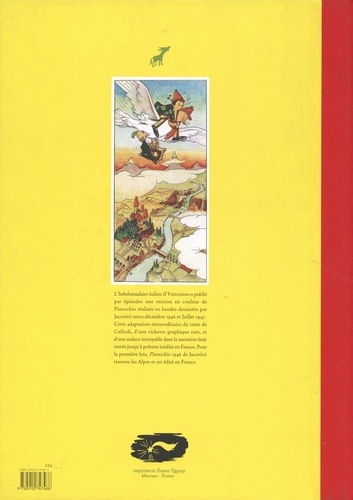 L'hebdomadaire italien Il Vottorioso a publié par épisodes une version en couleur de Pinocchio réalisée en bandes dessinées par Jacovitti entre décembre 1946 et juillet 1947. Cette adaptation extraordinaire du texte de Collodi, d'une richesse graphique rare, et d'une audace incroyable dans la narration était restée jusqu'à présent inédite en France. Pour la première fois, Pinocchio 1946 de Jacovitti traverse les Alpes et est édité en France.