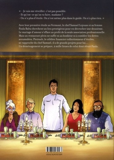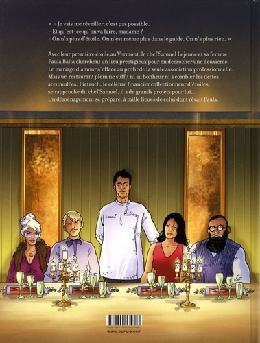 "- Je vais me réveiller, c'est pas possible. - Et qu'est-ce qu'on va faire, madame ? - On n'a plus d'étoile. On n'est même plus dans le guide. On n'a plus rien." Avec leur première étoile au Vermont, le chef Samuel Lejeune et sa femme Paula Balta cherchent un lieu prestigieux pour en décrocher une deuxième. Le mariage d'amour s'efface au profit de la seule association professionnelle. Mais un restaurant plein ne suffit ni au bonheur ni à combler les dettes accumulées. Pietruch, le célèbre financier collectionneur d'étoiles, se rapproche du chef Samuel, il a de grands projets pour lui... Un déménagement se prépare, à mille lieues de celui dont rêvait Paula.