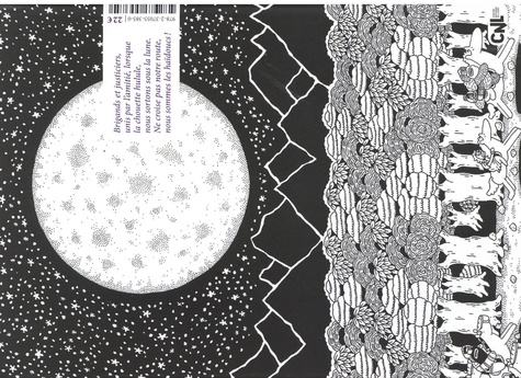 L'album de la plénitude d'un auteur de BD hors normes, à la croisée improbable de Charles Burns, Bruegel et Martin Handford. Nous voilà embarqués dans les aventures d'un colosse pas banal et d'un petit plus que malin, tous deux fiers brigands ayant un don pour se mettre dans le pétrin comme pour s'en sortir. Le sbire d'un sultan tyrannique et monstrueux est à leurs trousses, mais rien ne se passe comme il voudrait : les deux lascars résistent, une sorcière-démon sanguinaire reste à l'affut et une prostituée, malencontreusement impliquée dans cette affaire, se révèle prête à en découdre... Et tout cela se passe, évidemment, sous le regard d'un sage sans visage, d'un lapin pas net et d'une pleine lune obsédante, pesante, qui couve toute créature et réveille chez certains les instincts bestiaux... Pleine lune est une BD atypique et ludique, muette et en noir et blanc, qui donne toute sa place au dessin. On y entre avec une facilité déconcertante. Mêlant aventure, horreur, fantastique, comédie et tragédie, entre rêve et cauchemar, c'est un conte qui déploie un univers fourmillant et vertigineux de détails, dans lequel chaque planche est un monde. Alliant l'humour à un trait obsessionnel, à la fois naïf et d'une grande finesse, l'univers de Stanislas Moussé pourrait se décrire comme la rencontre entre Charles Burns, J. R. R. Tolkien, Pieter Bruegel et Où est Charlie ? Avec ce nouvel album pop, et après la trilogie de Longue vie, Stanislas Moussé atteint une apogée. Il pousse encore plus loin l'exploration de son imaginaire et affirme plus que jamais sa place singulière dans la BD contemporaine française.