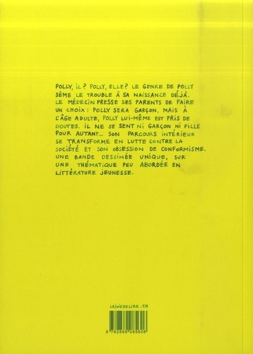 Polly, il ? Polly, elle ? Le genre de Polly sème le trouble à sa naissance déjà. Le médecin presse ses parents de faire un choix : Polly sera garçon. Mais à l'âge adulte, Polly lui-même est pris de doutes. Il ne se sent ni garçon ni fille pour autant... Son parcours intérieur se transforme en lutte contre la société et son obsession de conformisme. Une bande dessinée unique, sur une thématique peu abordée en littérature jeunesse.