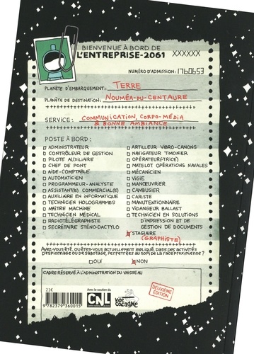 Pouvoirpoint se déroule dans un futur intemporel, lointain mais déjà vintage, dans lequel les Terriens ont colonisé les systèmes solaires voisins. Nous suivons la vie d'un graphiste stagiaire à bord d'un vaisseau spatial de commerce, le temps d'un voyage de quelques mois entre la Terre et Alpha du Centaure. Sur un ton absurde, nous découvrons avec lui la vie du vaisseau, entre quotidien de bureau et grands thèmes de science-fiction (sauts en hyper-espace, menace extra-terrestre). L'histoire est découpée en dix chapitres, allant de l'embarquement jusqu'à l'arrivée. Mais, en prologue et intercalées entre chaque chapitre, on voit des scènes en flash-forward pleines de bruit et de fureur, qui nous racontent la fin de l'histoire : tirs et explosions en rafales, le vaisseau et les personnages semblent en très mauvaise posture, rien ne va plus. Toute l'histoire de Pouvoirpoint se résume en une seule question : comment en sont-ils arrivés là ?