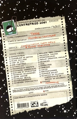 Pouvoirpoint se déroule dans un futur intemporel, lointain mais déjà vintage, dans lequel les Terriens ont colonise les systèmes solaires voisins. Nous suivons la vie d'un graphiste stagiaire à bord d'un vaisseau spatial de commerce, le temps d'un voyage de quelques mois entre la Terre et Alpha du Centaure. Sur un ton absurde, nous découvrons avec lui la vie du vaisseau, entre quotidien de bureau et grands thèmes de science-fiction (sauts en hyper-espace, menace extraterrestre). L'histoire est découpée en dix chapitres, allant de l'embarquement jusqu'à l'arrivée. Mais, en prologue et intercalées entre chaque chapitre, on voit des scènes en flashforward pleines de bruit et de fureur, qui nous racontent la fin de l'histoire : tirs et explosions en rafales, le vaisseau et les personnages semblent en très mauvaise posture, rien ne va plus. Toute l'histoire de Pouvoirpoint se résume donc en une seule question : comment en sont-ils arrivés là ?