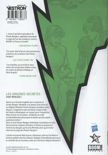 Dans les derniers épisodes de MIGHTY MORPHIN : Après une récente tragédie qui a ramené un ancien Ranger, Kimberly voit un avenir où les Mighty Morphin Power Rangers semblent avoir disparu. Craignant le pire, Kimberly implore Billy de l'aider à développer un moyen d'éviter cela. Mais l'avenir est incertain... et Kimberly va-t-elle accidentellement provoquer le destin qu'elle qu'elle espère éviter ? Contient également l'histoire Countdown to Ruin : découvrez les origines d'Andros et Zhane, et ce que l'avenir réserve aux Power Rangers !