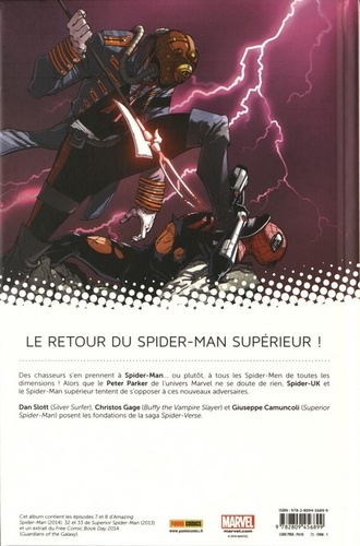 Des chasseurs s'en prennent à Spider-Man... ou plutôt, à tous les Spider-Men de toutes les dimensions ! Alors que le Peter Parker de l'univers Marvel ne se doute de rien, Spider-UK et le Spider-Man supérieur tentent de s'opposer à ces nouveaux adversaires. Dan Slott (Silver Surfer), Christos Gage (Buffy the Vampire Stayer) et Giuseppe Camuncoli (Superior Spider-Man) posent les fondations de la saga Spider-Verse.