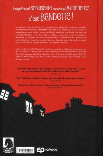 Le plus grand voleur du monde est une voleuse, une adolescente en costume répondant au charmant pseudonyme de Bandette ! Avec l'aide de ses fidèles Oursins, elle exerce son art parfois au mépris, parfois au service de la loi, et devient ainsi le pire cauchemar de l'inspecteur Belgique comme du monde de la pègre. Mais un jour, un voleur rival fait une découverte qui risque de perturber son petit monde où l'on brise les coeurs d'artichaut et où l'on dérobe les chefs-d'oeuvre à tour de bras... Bandette saura-t-elle garder le sourire tandis qu'elle déjoue un plan diabolique pour attenter à sa vie ? Ce beau volume contient la première aventure complète de l'adorable personnage créé par Paul Tobin et Colleen Coover, suivie d'une collection d'histoires mettant en scène les Oursins illustrées par Steve Lieber, Jonathan Case, Erika Moen, Jennifer Meyer, Rich Ellis, Alberto J Alburquerque, Tina Kim et Mitch Gerads ainsi qu'une histoire illustrée et bien d'autres surprises.
